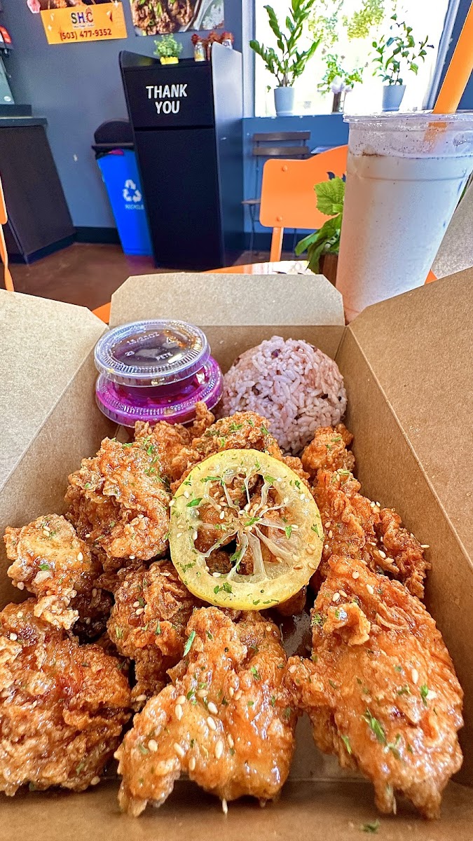 I stumbled upon this place driving through north Portland and decided to stop on a whim. I feel like I hit the lottery because it’s everything one could ask for from a family owned chicken spot. They’re hands down my favorite chicken spot. I’ve been back a few times, had different menu items, and it’s never not been exceptional. The chicken is always fresh steaming hot and perfectly coated in one of their many delicious sauces and spices (my favorite is sweet hot spicy but the sweet soy lemon is phenomenal too). Bone in or boneless doesn’t matter they both are great and it really comes down to personal preference when making that choice. The service is always kind and prompt and you can tell from the way food is packaged to go that the quality and freshness of the food is paramount. It does have a small simple dining room to eat in if you’d rather dine in. A selfish part of me wants to keep this hidden gem a secret but this chicken is too good not to share and ensure this business sees success and the owners are rewarded for doing such a wonderful job.