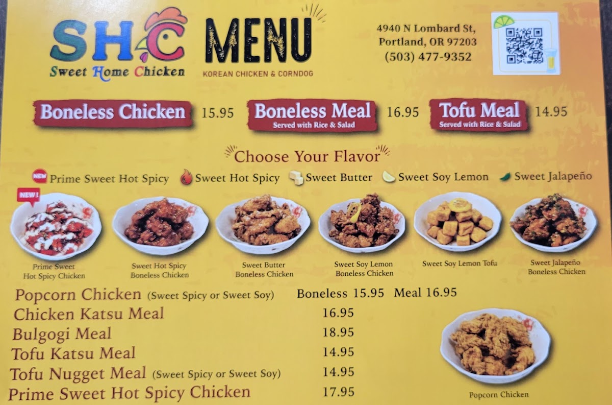 Sweet Home Chicken (SHC) Menu